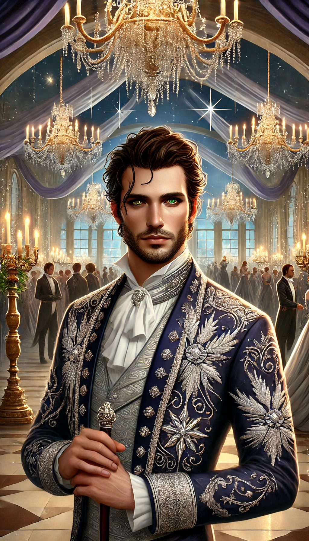 Clothing: Favors finely tailored doublets in navy and gold, embroidered with patterns resembling trade routes. Always carries a gilded longsword, both as a symbol of authority and readiness.